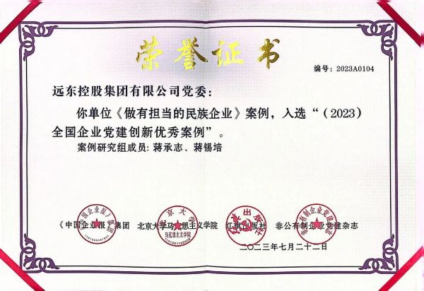 6.远东控股集团《做有担当的民族企业》成功入选《2023全国企业党建创新优秀案例》